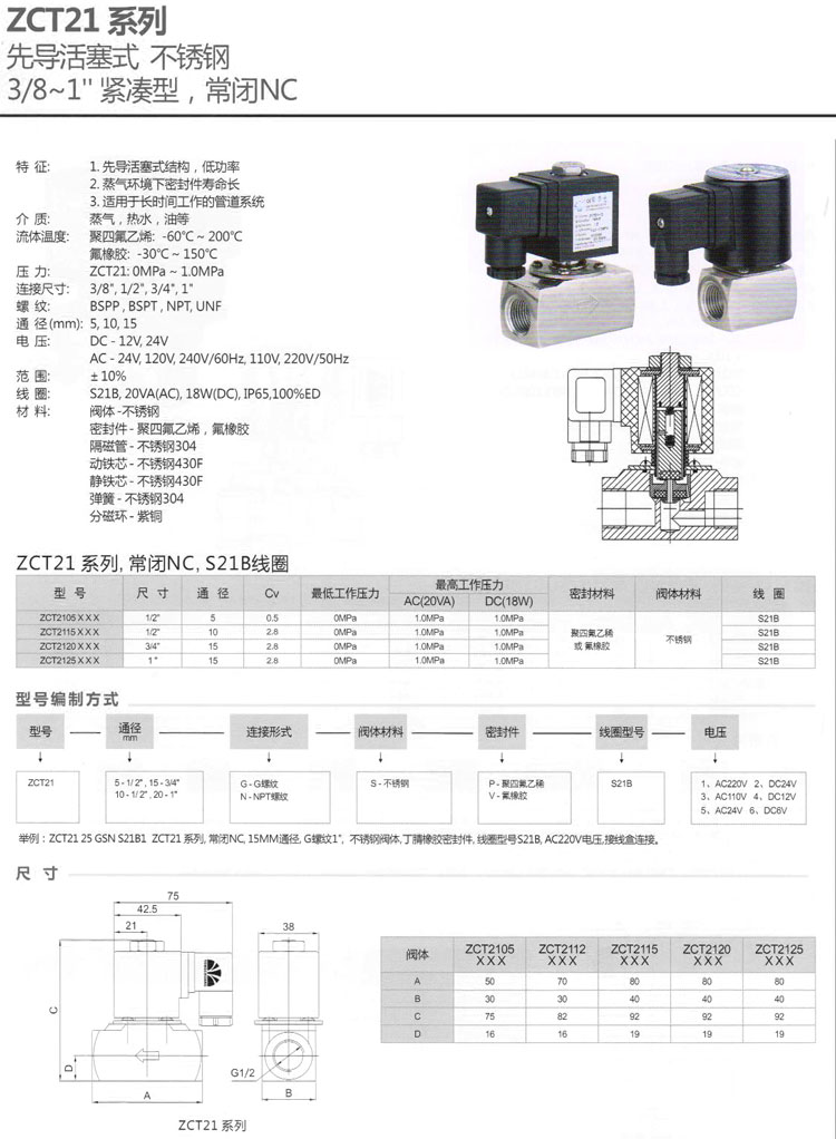 ZCT2105,ZCT2115,ZCT2120,ZCT2125,先導(dǎo)活塞式電磁閥