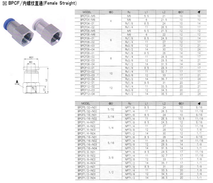 BPCF04,BPCF06,BPCF08,BPCF10,BPCF12,BPCF5/32,BPCF3/16,BPCF1/2,BPCF1/4,BPCF1/2-N04,快插式氣動(dòng)管接頭 |
