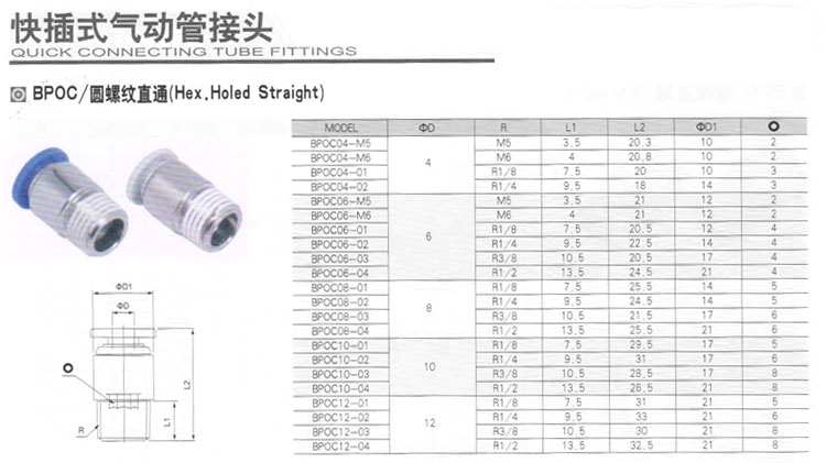 BPOC04-M5,BPOC06-M5,BPOC08-01,BPOC10-01,BPOC12-01,BPOC04-M6,快插式氣動(dòng)管接頭