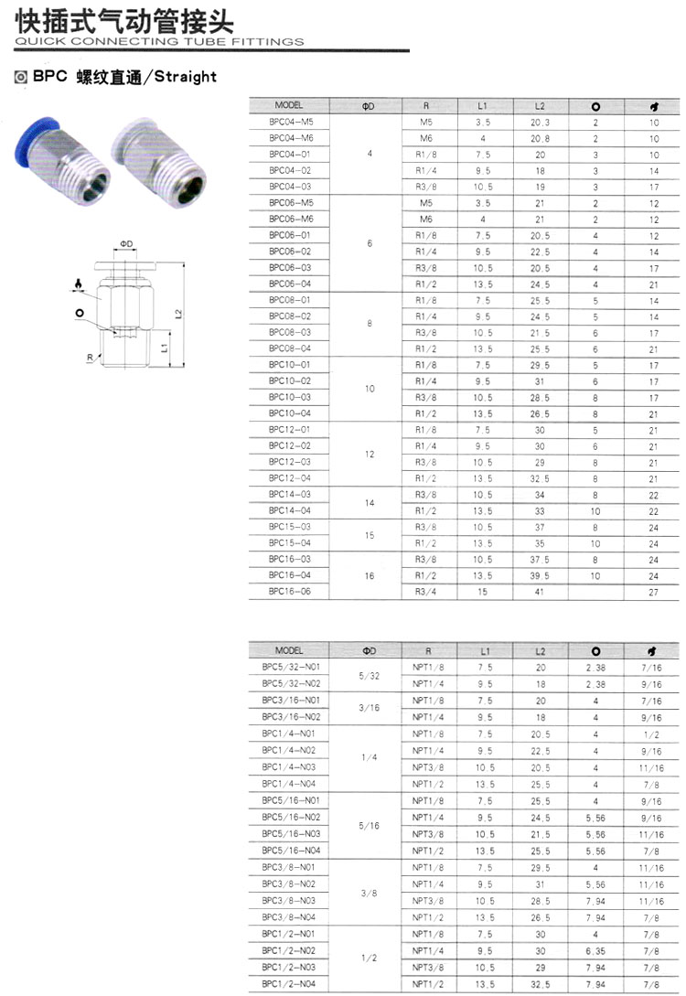 BPC04,BPC06,BPC08,BPC10,BPC12,BPC14,BPC15,BPC16,BPC5/32,BPC1/4,BPC3/8,BPC1/2,快插式氣動管接頭 |