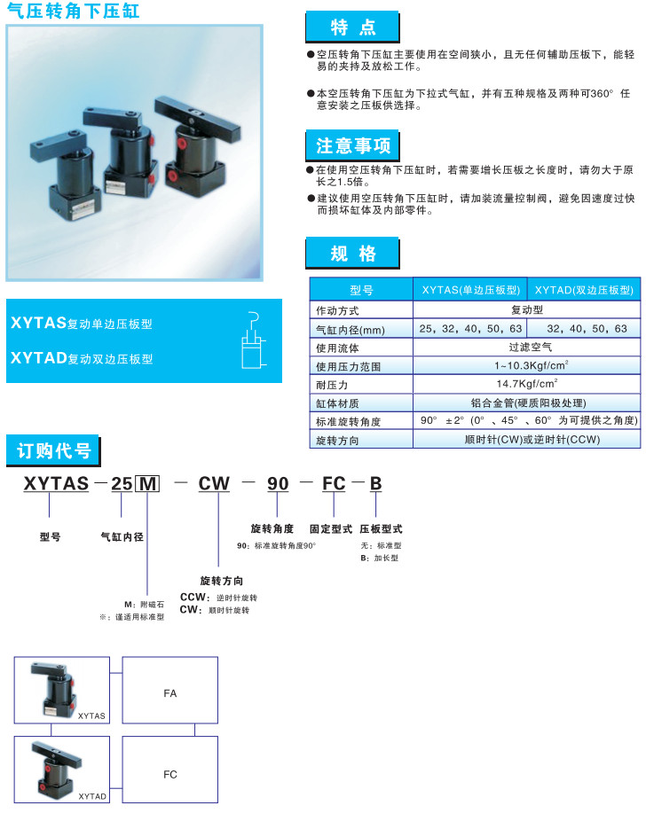 XYTAS-25M-CCW-90-FA,XYTAS-32M,XYTAS-40M,XYTAD-32M,XYTAD-63M,轉(zhuǎn)角氣缸