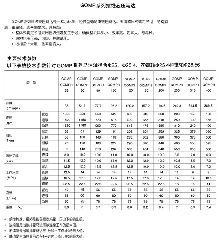 GOMP-36,GOMP-50,GOMP-80,GOMP-100,GOMP-125,GOMP-160,GOMP-200,GOMP-250,GOMP-315,GOMP-400,擺線液壓馬達(dá) |