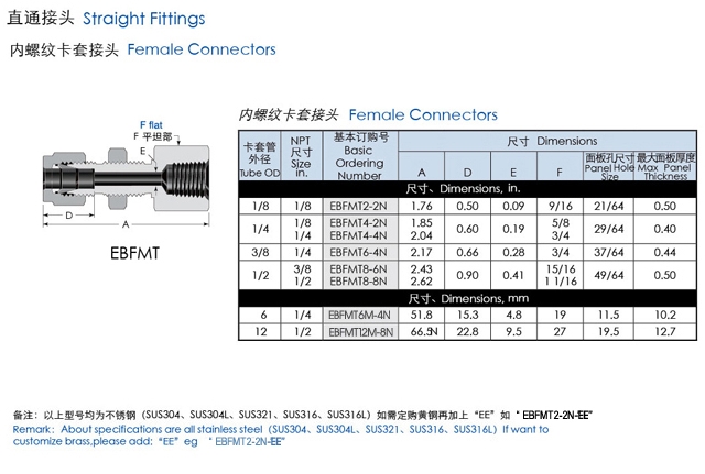 EBFMT2-2N,EBFMT4-2N,EBFMT4-4N,EBFMT6-4N,EBFMT8-6N,EBFMT8-8N,直通壓力表穿板卡套接頭
