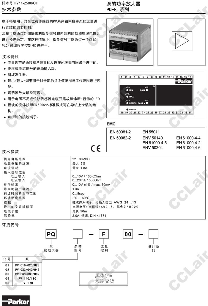 PQ01-F00,PQ02-F00,PQ03-F00,PQ04-F00,PQ05-F00,Parker功率放大器