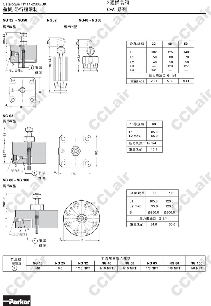 C016B,C025B,C032B,C040B,C050B,C063B,C080B,C100B,C016BN99N,C016BY99N,Parker2通插裝閥蓋板