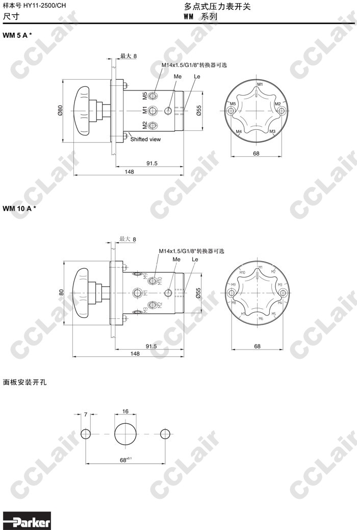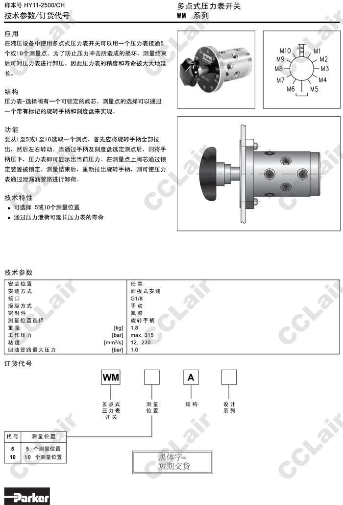 VM5A,VM10A,Parker多點式壓力表開關(guān)