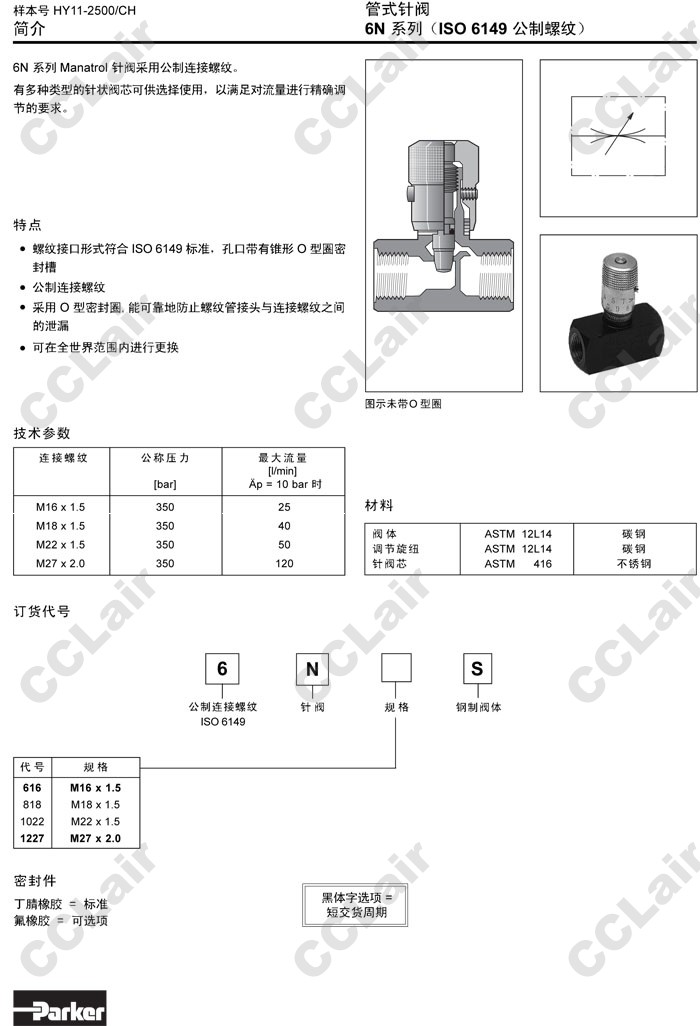 6N616S,6N818S,6N1022S,6N1227S,Parker管式針閥