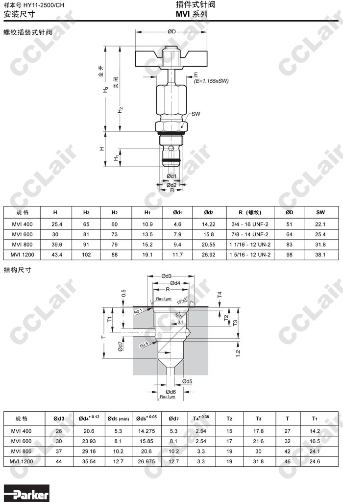 MVI400S,MVI400S2,MVI400S3,MVI600S,MVI800S,MVI1200S,Parker插件式針閥
