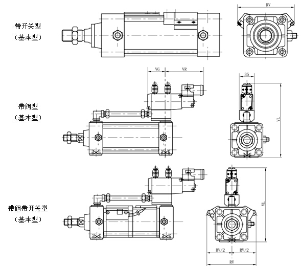 | 氣缸內(nèi)徑Ф(mm) | RV | VG | VL | VR |