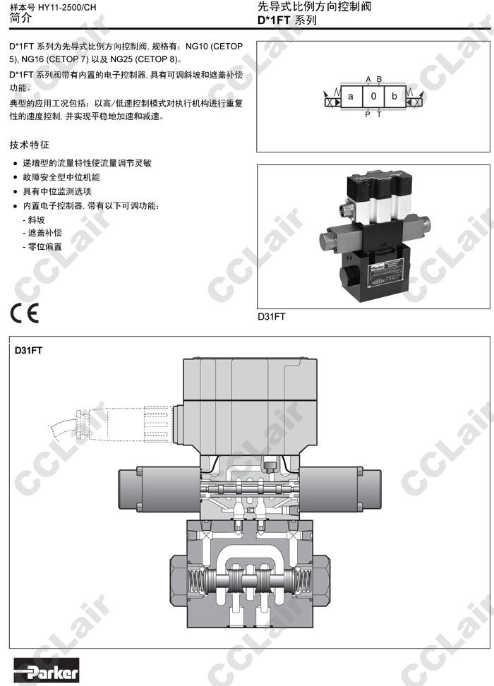 D31FTE,D41FTE,D91FTE,D31FTE01CC1NF00,D41FTE01FC1NF00,D91FTE01HC1NF00,Parker先導(dǎo)式比例方向控制閥