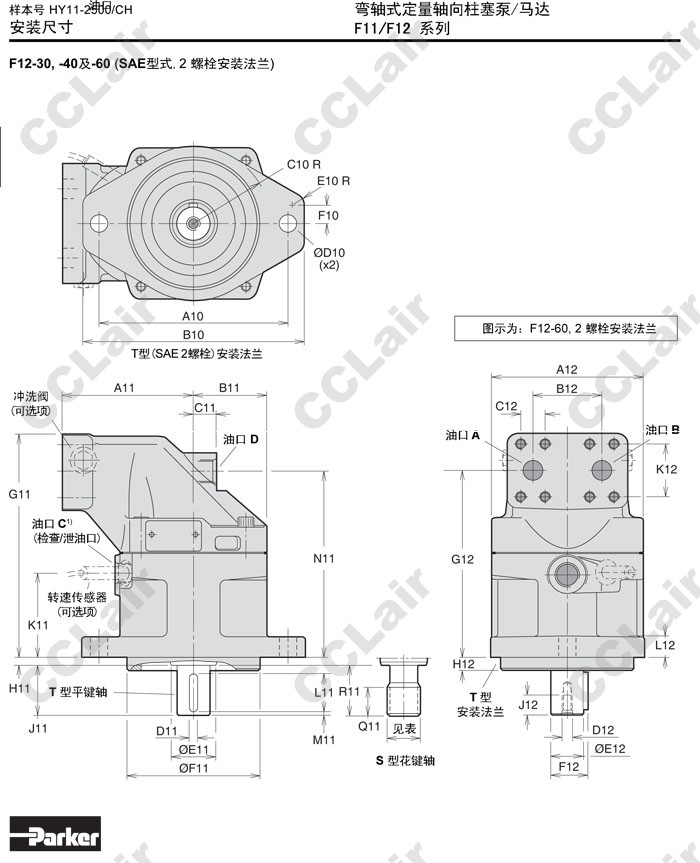 F12-30-R,F12-40-R,F12-50-R,F12-60-R,F12-80-R,F12-110-R,F12-110-RF-IV-K,Parker彎軸式定量軸向柱塞泵