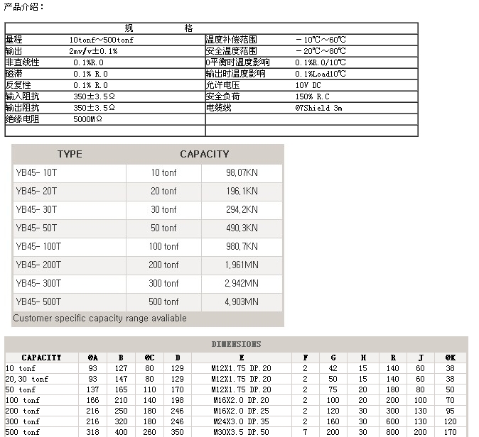 setech稱重傳感器YB45-10T,YB45-20T,YB45-30T,YB45-50T,YB45-100T,YB45-200T |