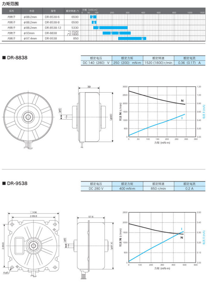 DR-8538-6,DR-8538-8,DR-8538-12,DR-8838,DR-9538,內(nèi)轉(zhuǎn)子直流無(wú)刷馬達(dá)