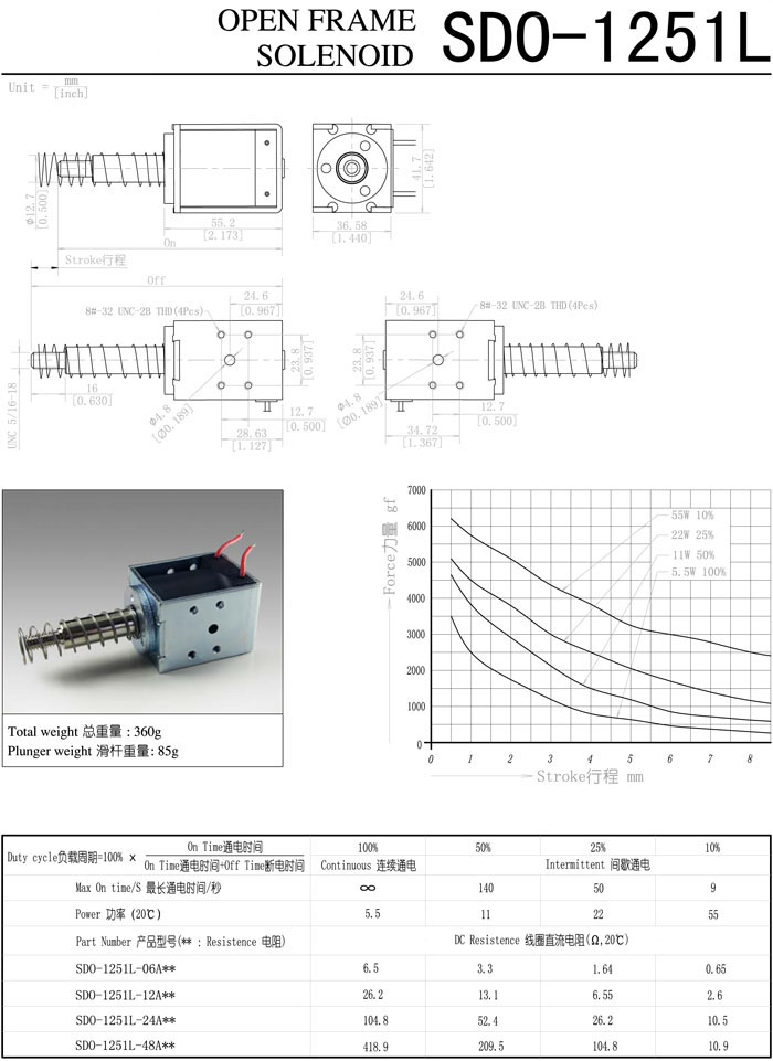 SDO-1251L-06A,SDO-1251L-12A,SDO-1251L-24A,SDO-1251L-48A,直動(dòng)電磁鐵