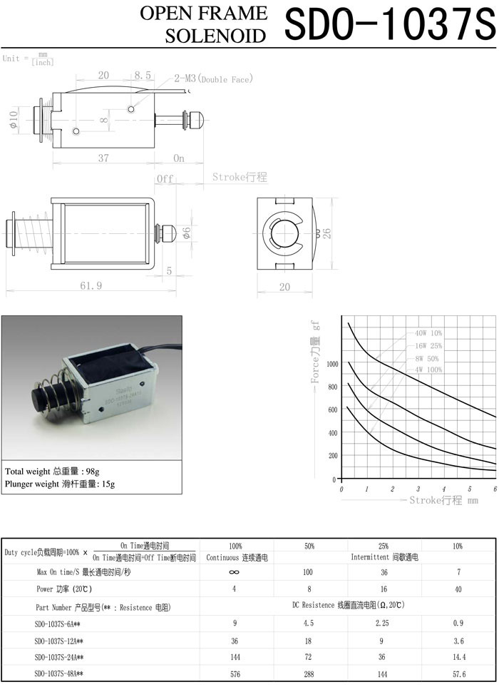 SDO-1037S-6A,SDO-1037S-12A,SDO-1037S-24A,SDO-1037S-48A,直動(dòng)電磁鐵