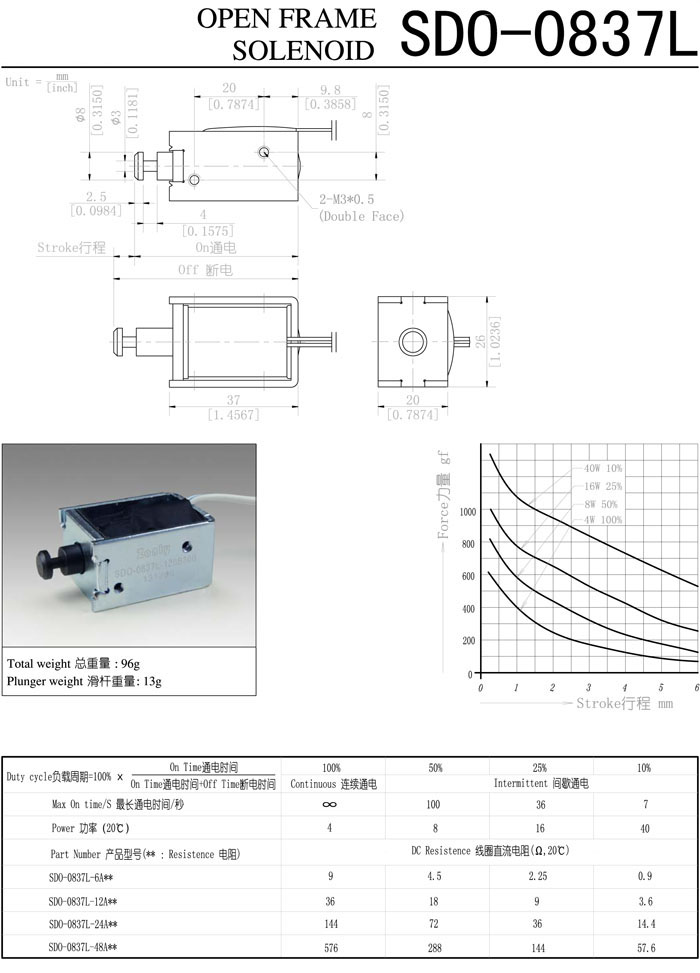 SDO-0837L-6A,SDO-0837L-12A,SDO-0837L-24A,SDO-0837L-48A,直動電磁鐵 |