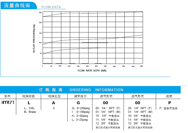 調(diào)節(jié) 壓力: 0~25, 0~50, 0~100,0~250 psig