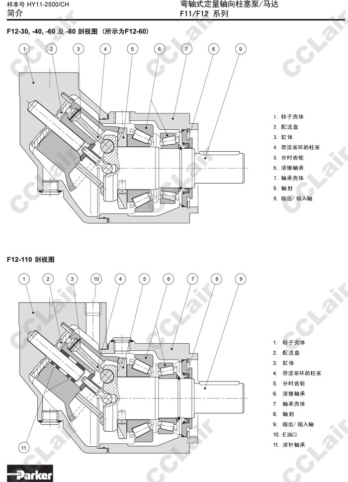 F11-005-R,F11-010-R,F11-014-R,F11-019-R,F11-150-R,F11-005-RB-CN-K,Parker彎軸式定量軸向柱塞馬達(dá)