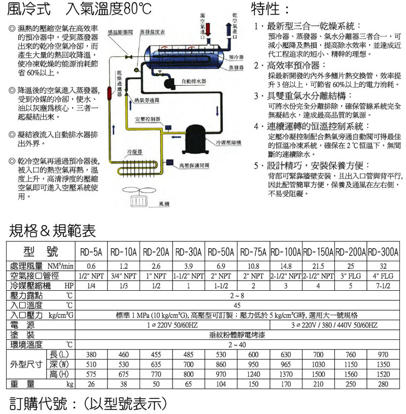 RD-5A,RD-10A,RD-20A,RD-30A,RD-50A,RD-75A,RD-100A,panix風冷式標準型冷干機 |