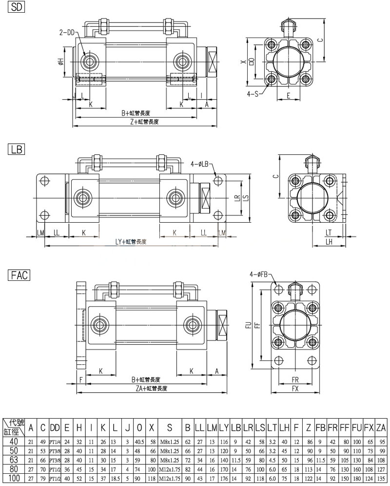 PAH-40*100,PAH-50*100,PAH-63*100,PAH-80*100,PAH-100*100,PAH-125*100,PAH-150*100,