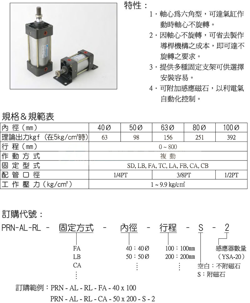 PRN-AL-RL-FA,PRN-AL-RL-LB,PRN-AL-RL-CA,PRN-AL-RL-SD,panix不旋轉(zhuǎn)標(biāo)準(zhǔn)氣缸