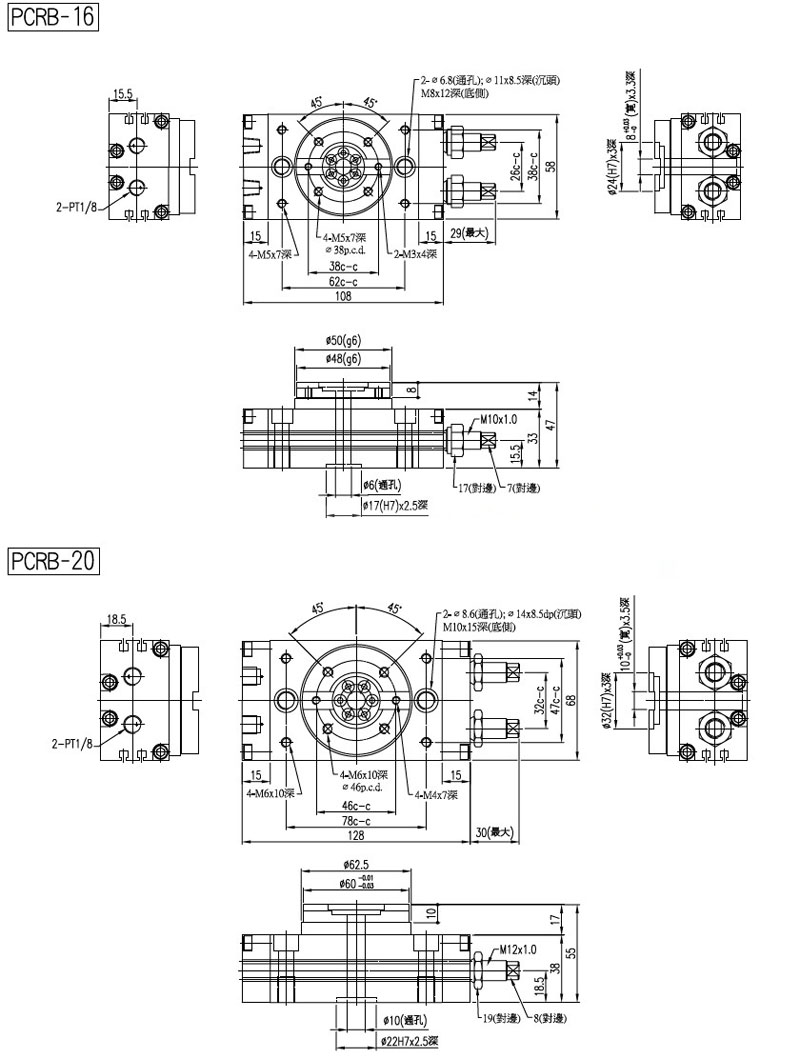 PCRB-16,PCRB-20,PCRB-25,PCRB-32,panix旋轉(zhuǎn)氣壓缸