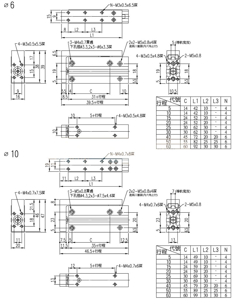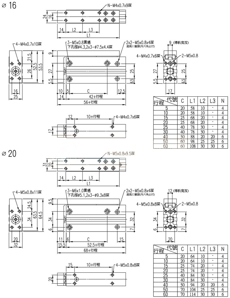 PXH-6-5,PXH-10-25,PXH-16-30,PXH-20-40,panix精巧型滑軌氣壓缸 |