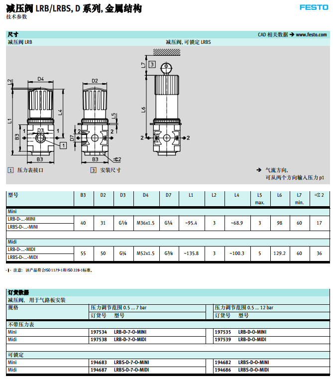 LRB-D-7-0-MINI,LRB-D-7-0-MIDI,LRBS-D-7-0-MINI,LRBS-D-7-0-MIDI,festo減壓閥 |