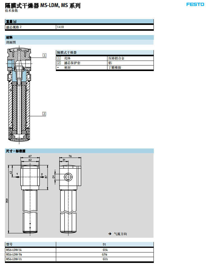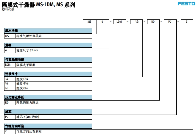 MS6-LDM-1/4-RD-P2-Z,MS6-LDM-3/8-RD-P2-Z,MS6-LDM-1/2-RD-P2-Z,festo隔膜式干燥器 |