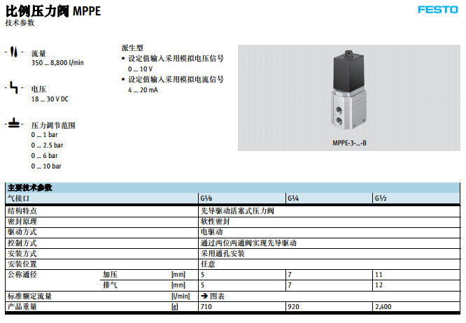 MPPE-3-1/8-1-010-B,MPPE-3-1/4-1-010-B,MPPE-3-1/2-1-010-B,festo比例壓力閥