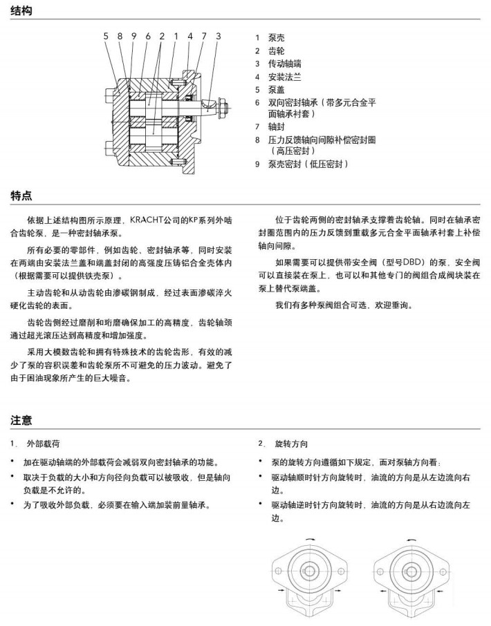 KP1/3,KP1/4,KP1/5.5,KP1/6.3,KP1/8,KP1/11,KP1/14,KP1/16,KP1/19,KP1/22,kracht高壓齒輪泵