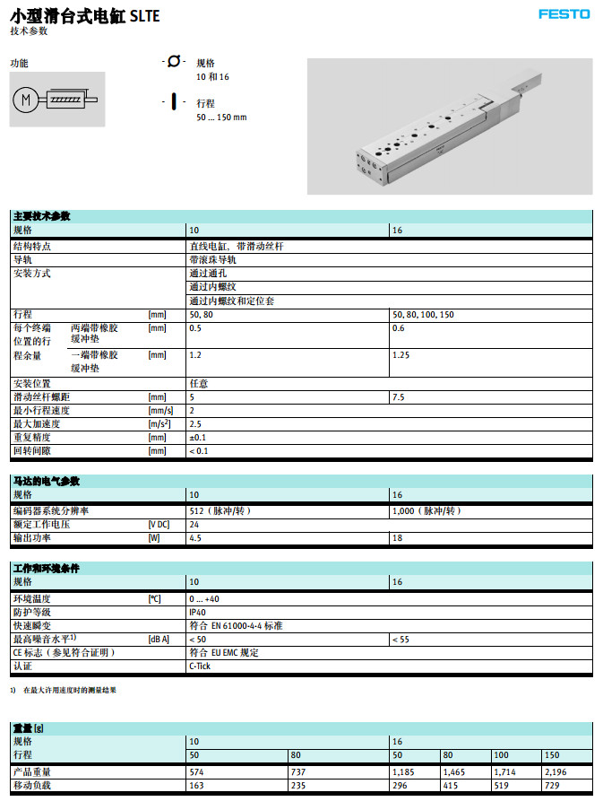SLTE-10-50,SLTE-16-80,SLTE-16-100,SLTE-16-150,festo小型滑臺式電缸