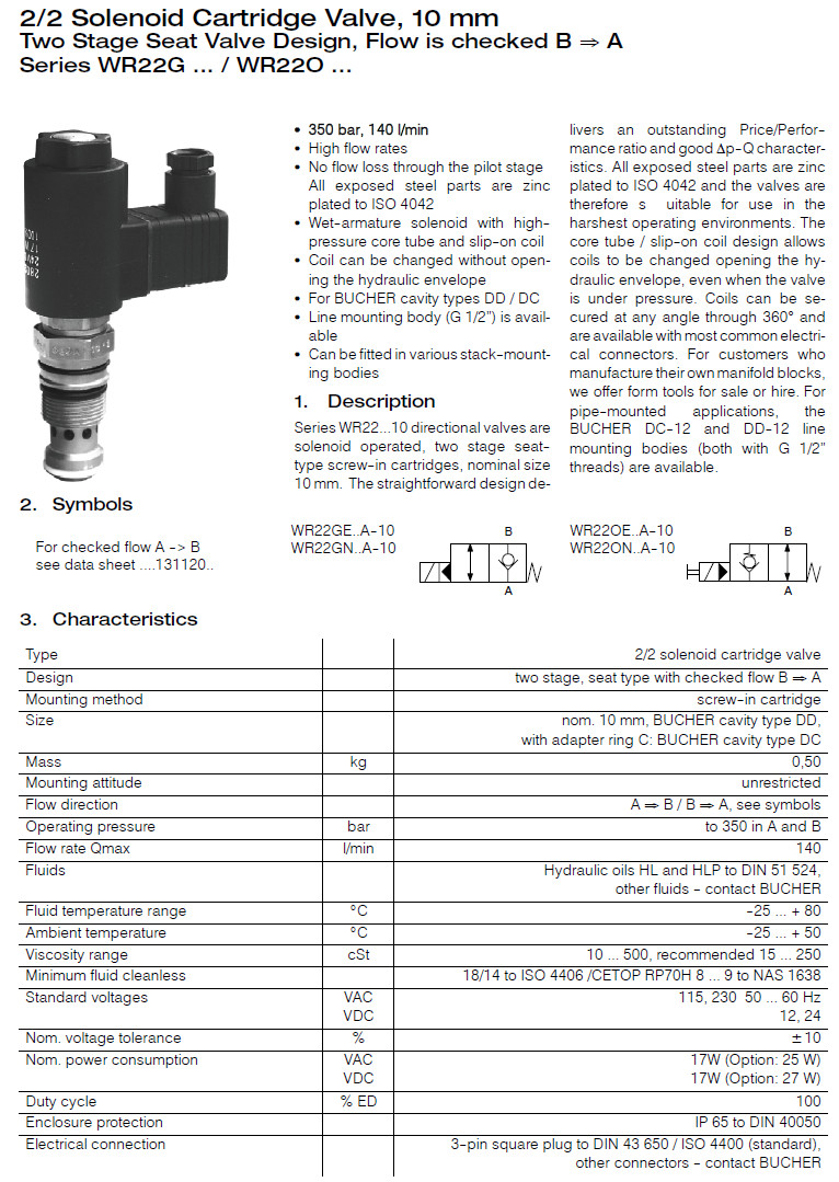 WR22GEDA-10-1,WR22OEDA-10-1,WR22GNDA-10-1,WR22ONDA-10-1,WR22GECA-10-1,Bucher方向閥 |