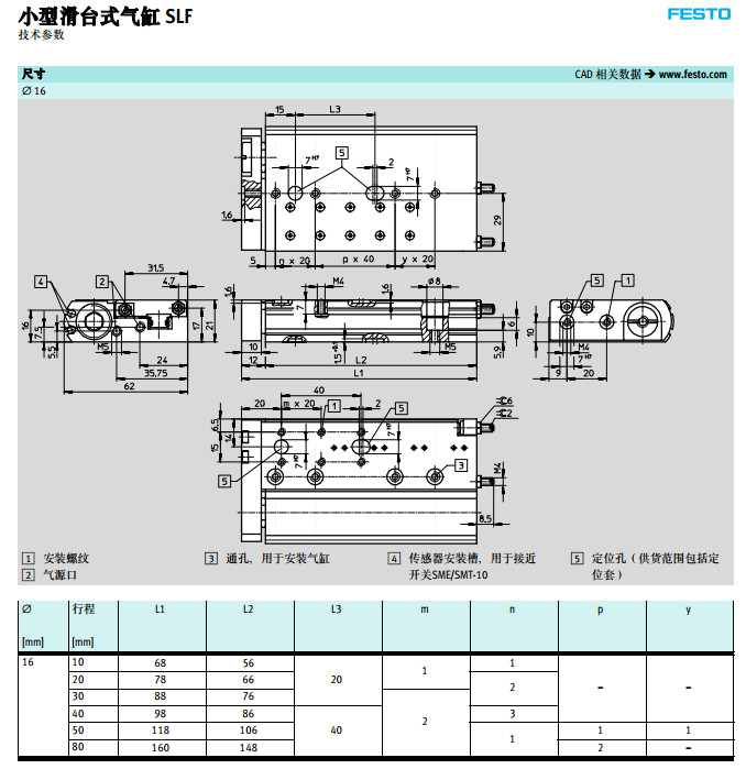 SLF-6-10,SLF-10-10,SLF-16-10,SLF-6-20,SLF-10-30,festo小型滑臺式氣缸 |