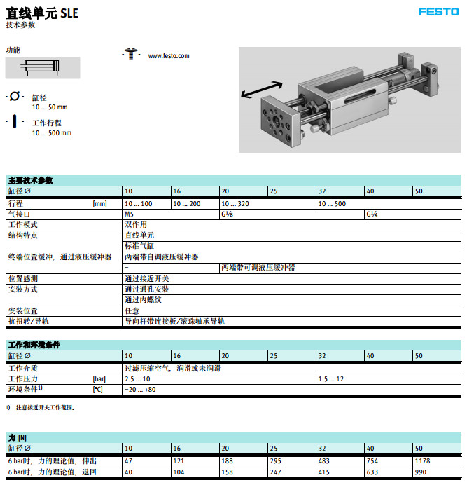 SLE-10,SLE-16,SLE-20,SLE-25,SLE-32,SLE-40,SLE-50,festo直線單元
