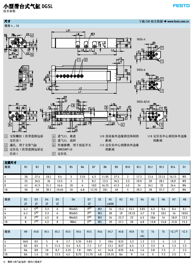 DGSL-4,DGSL-6,DGSL-8,DGSL-10,DGSL-12,DGSL-20,festo小型滑臺式氣缸 |