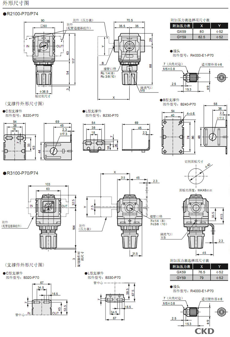 R2100-8,R2100-10,R3100-8,R3100-10,R4100-8,R4100-10,R4100-15,R6100-15,R6100-20,R6100-25,CKD可逆流減壓閥