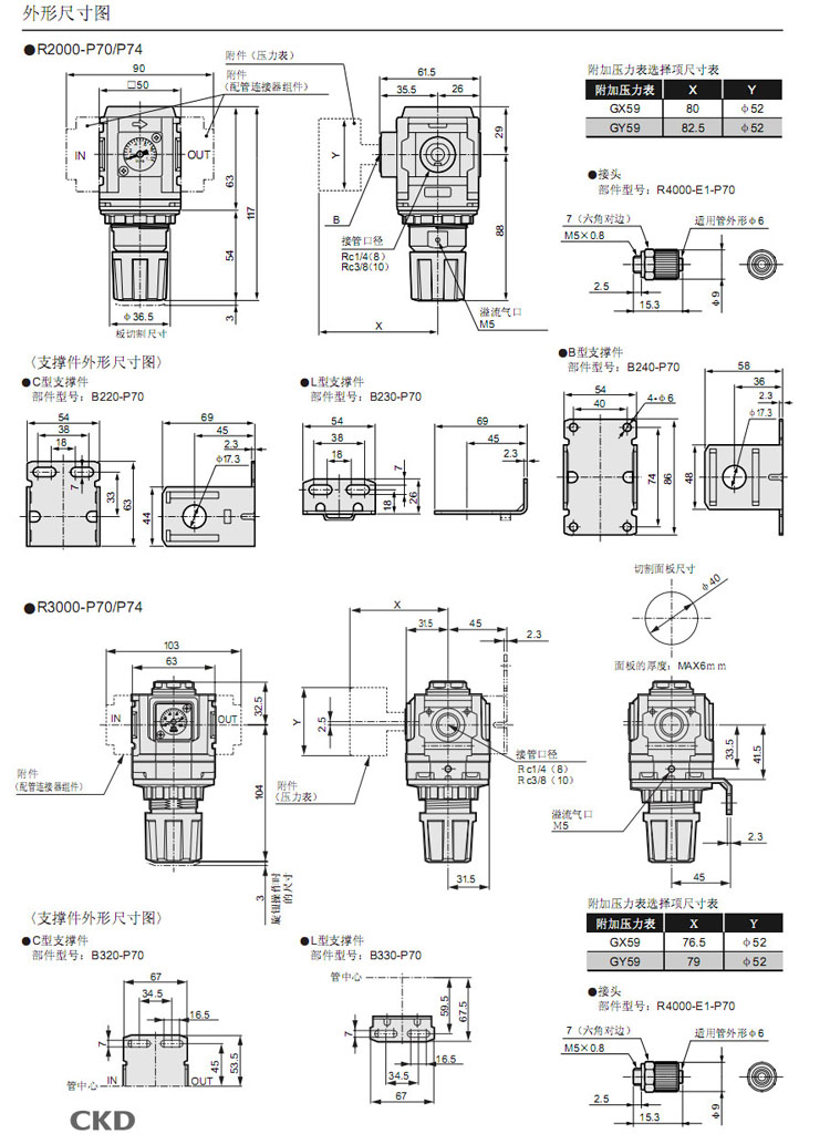 R2000-8,R2000-10,R3000-8,R3000-10,R4000-8,R4000-10,R4000-15,R6000-20,R6000-25,CKD減壓閥