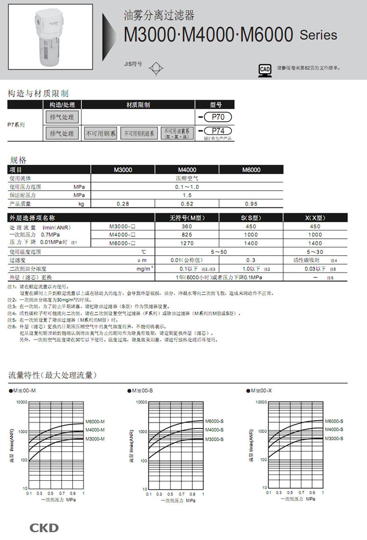 M3000-8,M3000-10,M4000-8,M4000-10,M4000-15,M6000-20,M6000-25,CKD油霧分離過濾器 |