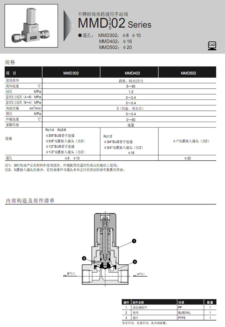 MMD302-8,MMD402-15,MMD502-8BT,MMD302-3BT,MMD302-6S,MMD402-12S,MMD502-16S,CKD藥液用手動閥