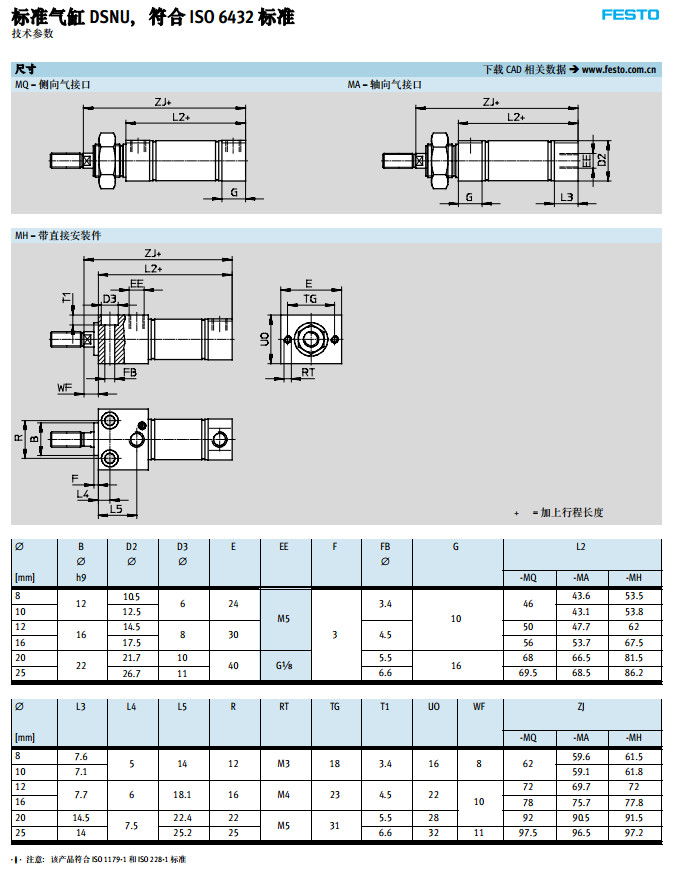 DSN-8,DSN-10,DSN-25,DSNU-8,DSNU-12,DSNU-20,festo標(biāo)準(zhǔn)氣缸
