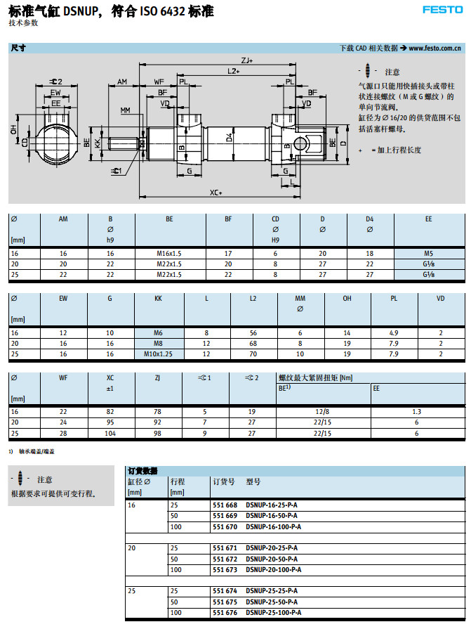 DSNUP-16-50-P-A,DSNUP-20-50-P-A,DSNUP-25-50-P-A,festo標準氣缸