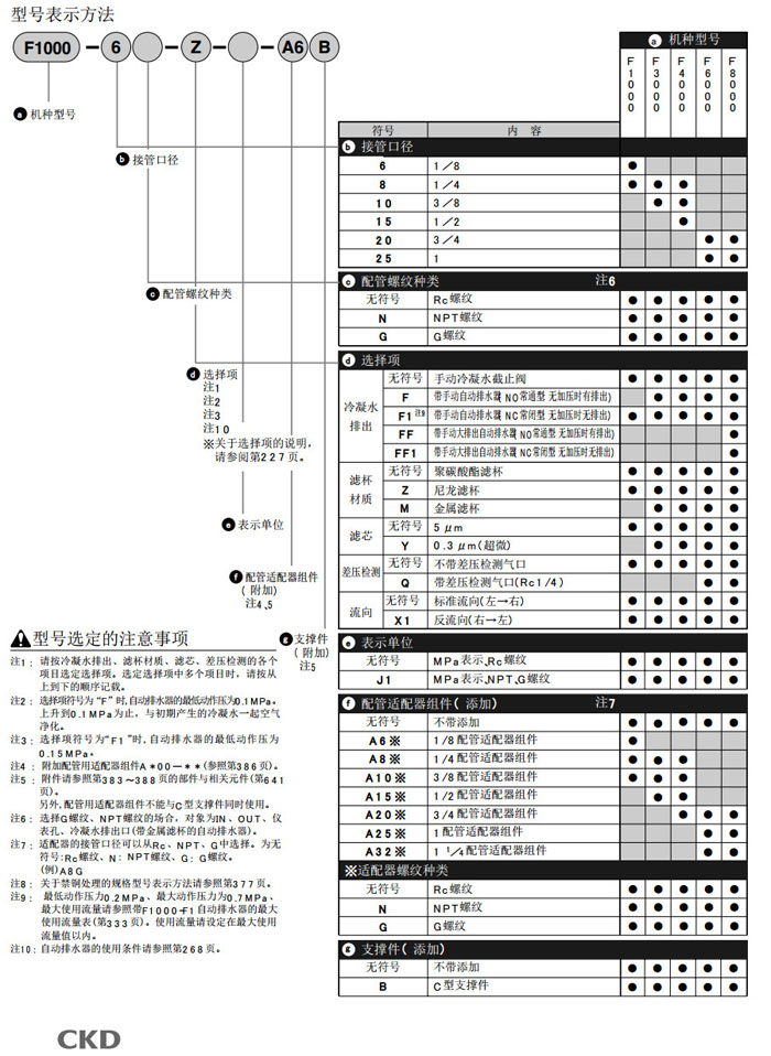 F1000-6,F1000-8,F3000-8,F3000-10,F4000-8,F4000-10,F4000-15,F6000-20,F8000-25,CKD過(guò)濾減壓閥