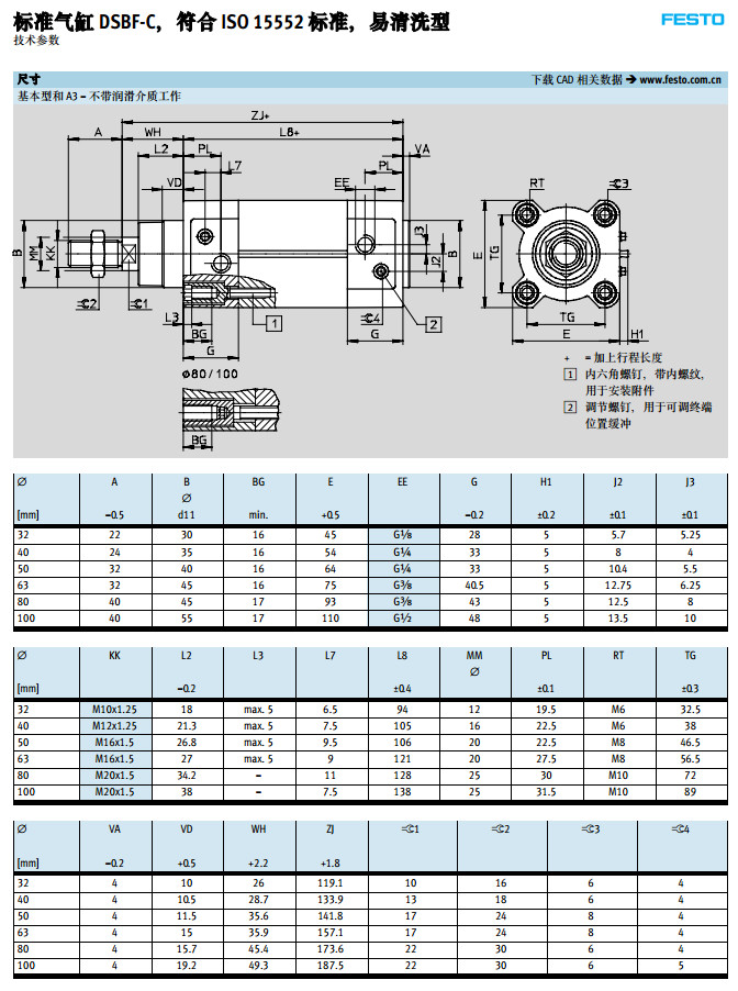 DSBF-C-32,DSBF-C-40,DSBF-C-50,DSBF-C-63,DSBF-C-80,festo標準氣缸