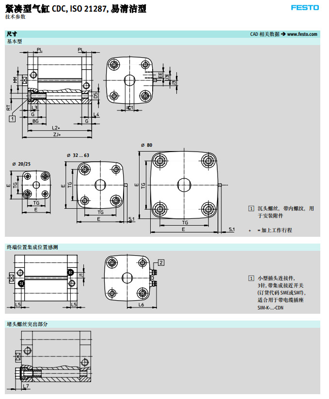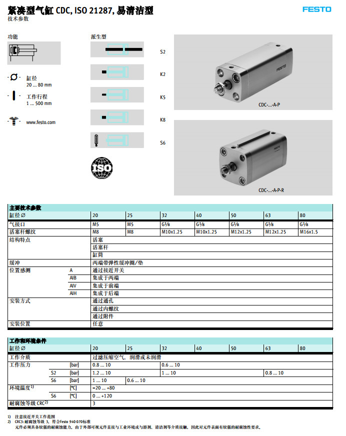型號: CDC-20,CDC-25,CDC-32,CDC-40,CDC-50,CDC-63,CDC-80,festo緊湊型氣缸