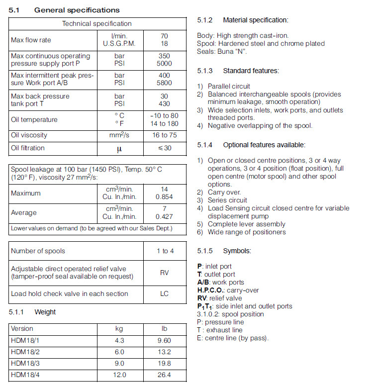 HDM18/1,HDM18/2,HDM18/3,HDM18/4,Bucher整體式方向控制閥