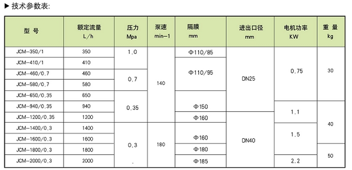 JCM-350/1,JCM-410/1,JCM-460/0.7,JCM-580/0.7,JCM-650/0.35,機(jī)械隔膜式計量泵