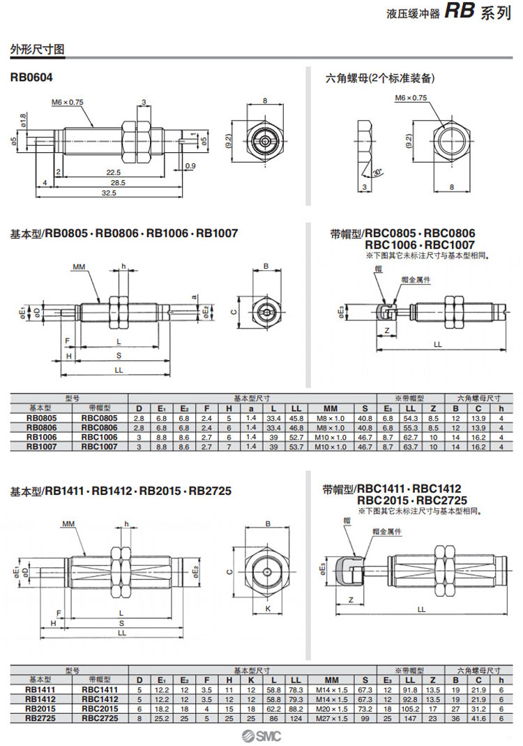 RB0604,RB0805,RB0806,RB1006,RB1007,RB1411,RB1412,RB2015,RB2725,SMC液壓緩沖器