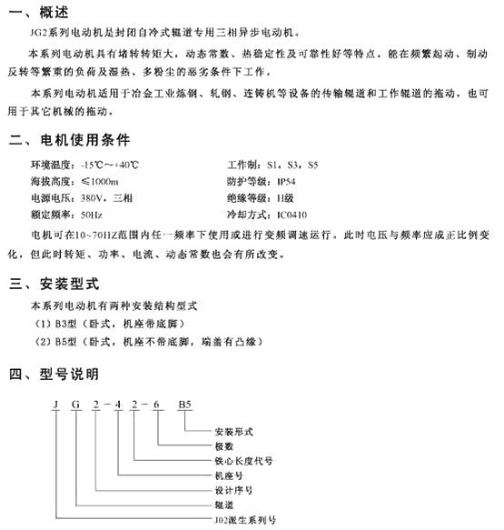 JG241,JG242,JG252,JG261,JG262,JG271,JG272,輥道三相異步電動機