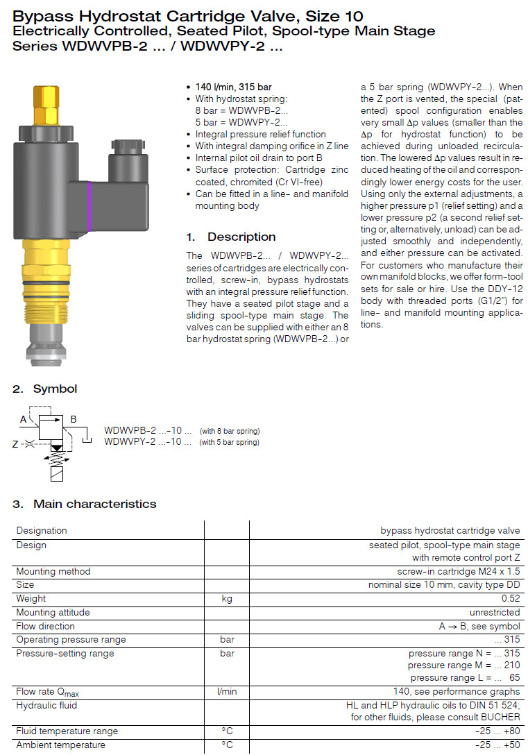 WDWVPB-2NDO-10-1,WDWVPB-2MDO-10-1,WDWVPB-2LDO-10-1,Bucher旁路閥插裝閥 |